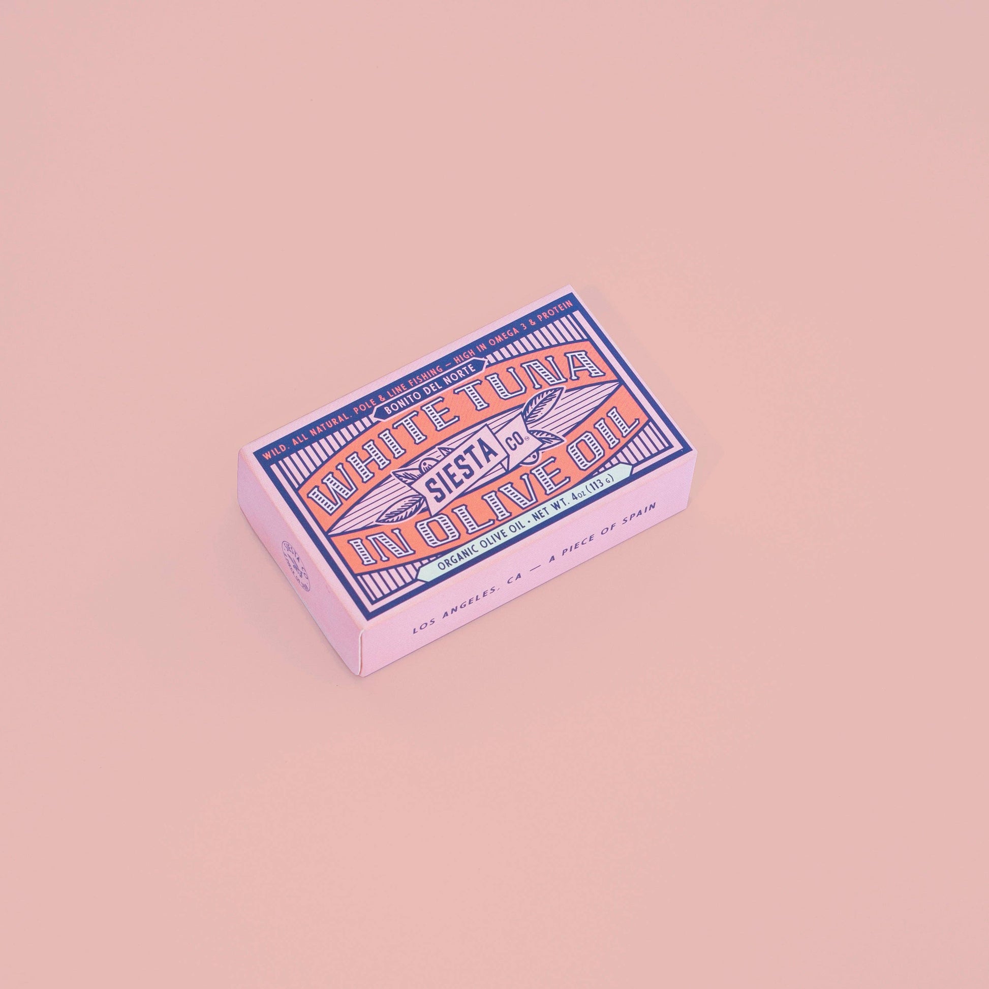 Siesta Co. premium loins of wild bonito del norte tuna. Sustainably line caught through pole fishing to preserve the flavor and texture of the tuna while ensuring the seabed is not damaged. Meticulously cleaned and packed in organic olive oil, this bonito is a culinary classic from Spain. Characterized by its exquisite flavor and incomparable soft texture, its versatility is unmatched; eat it straight from the tin, mix it into a salad or onto a bocadillo. Its rich flavor and nutritional properties will leave you with the sensation of a true Mediterranean diet.